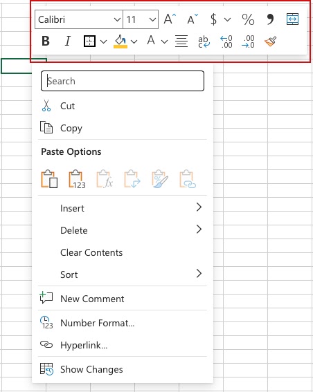 - Formatting menu, by right clicking cells