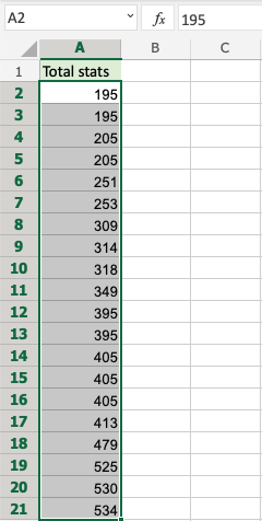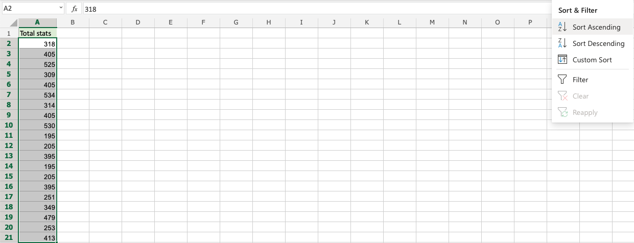 Note: A1 is not included as it is the header for the column. This is the row that is dedicated to the filter. Including it will blend it with the rest.