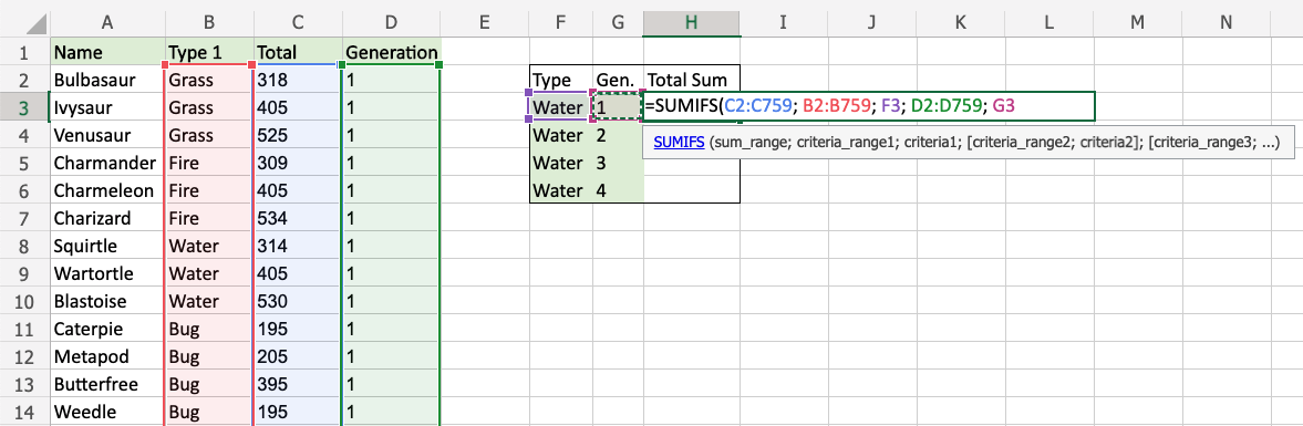 Example SUMIFS function, step by step: