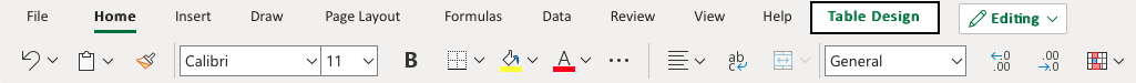 - Click the Table design menu