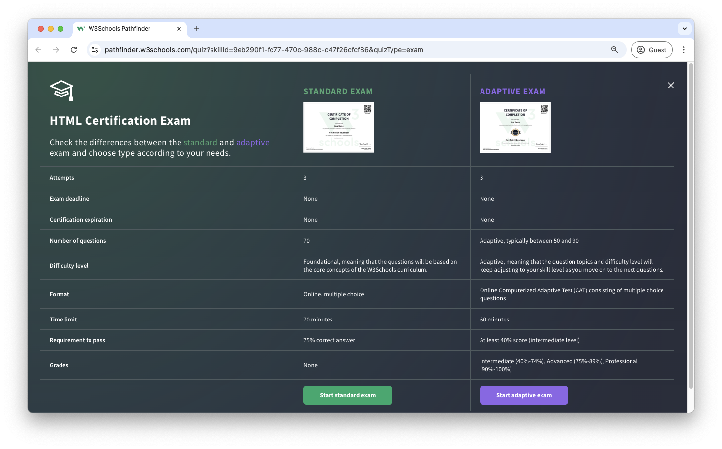 After passing the exam you get the "Certified HTML Developer" Certification.